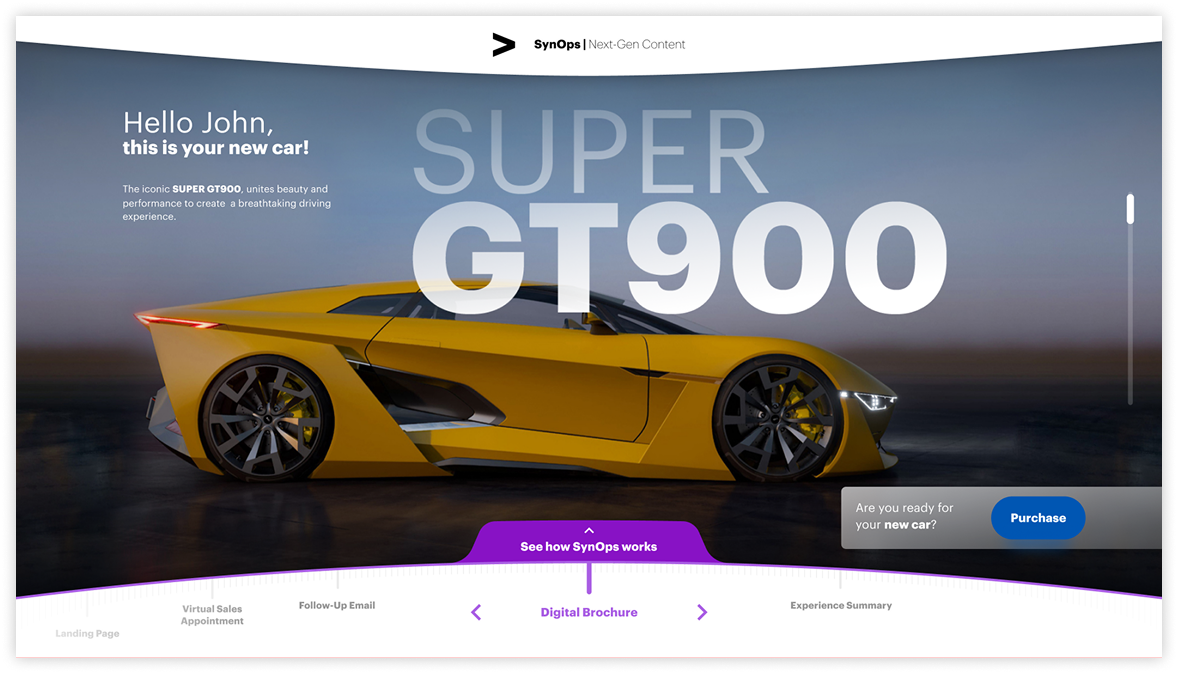 During my time at Accenture, I designed a Figma prototype showcasing the next generation of SynOps — Accenture's intelligent operations platform. The brief: demonstrate how SynOps could power a luxury automotive purchase experience with VR test drives, hyper-customization, and metaverse commerce. Two months. C-suite audience. Every screen had to carry its weight.